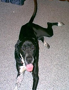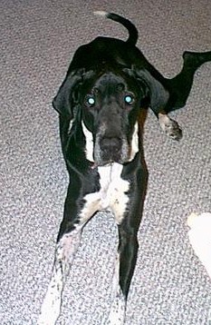 Luther - 4 year old mismarked black male with natural ears. 6 months ago Luther was given to the original owners son because she was moving to an apartment that did not take dogs. The son gave Luther to someone else, because he barked during the day. That person forgot to mention that they were allergic to dogs, and he has spent the last few months locked away in a basement. She finally called rescue |