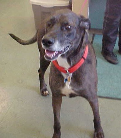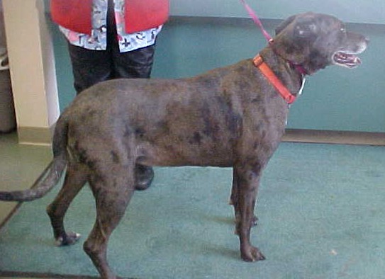 Ladybug - 4.5 yrs, spayed female. She is wonderful and loving. She can sit and shake hands. She is partially housebroken. Her owner died and she was taken to shelter. She needs leash work because she pulls a good bit when you walk her; however she does better after her initial excitement of going outside. Lady Bug gets along great with children. She has not shown any aggression toward cats. When we walk her