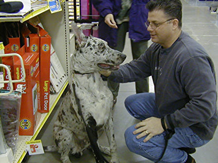 MAX - 9 mo. old dane/shepard mix. Max is all puppy and very sweet. Max's owners are turned him in because he is so active. He has lived with children before he came to us and is a sweet boy.