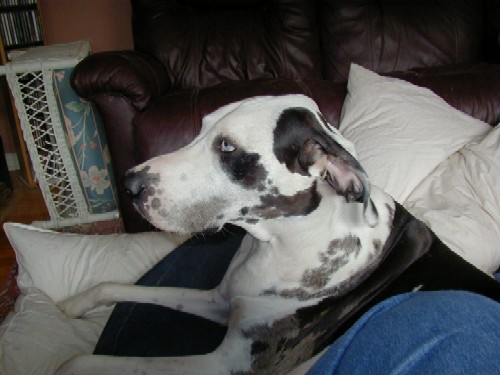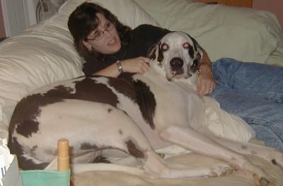 Here Anji shows me how to let Xena "drape" without having to get on the couch!
