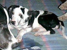 | Jules Guthrie’s Xena…how can one capture her in words? She was lovely, just a beautiful girl, with haunting blue eyes, extra-long soft ears, and bright white fur wildly splashed with black. She always had a serious look on her little mug. This might have been because she believed herself a princess and thus, had the regal bearing that goes along with the royal title. Yet, for such a regal girl, Xena had the heart of a little con artist and the bark of an off-tune, slightly tipsy bloodhound (“ow wooooo…squeak!”). I know she was a con artist, because Jules would tell me how Xena would manipulate the other pups to steal treats and ease onto prime snooze spots. She was not only a con artist, but also a smart one, well versed in the art of distraction: “Hey, there’s somebody at the door! You all go check, while I double-back and steal your treat!” Xena came to Jules through the league as a little puppy. Who could resist those baby-seal eyes and soft fur? Although she had a growth disorder that prevented her from hard physical activity, she was still sure to be in the middle of things. If you visited Jules, (after you heard the hailing “ow wooooooo….squeak!”), Xena would be jostling for prime petting position with the other dogs near the kitchen doorway. Then, after the princess had accepted your greeting, she would often curl up on her “throne,” a soft easy chair. If she wasn’t reclining in her chair, she would often stand with her front feet on your chair, as if to say, “You are a small subject that I look down upon, but I love you anyway. I command petting.” When Xena was younger and feeling well, Jules took her to Petsmart Meet and Greets, where Xena often crashed on her doggy bed. I’ve never seen so many people and children enjoy petting a sleeping dog – even asleep, she was irresistible! Little children often sat or crawled onto the blanket with her and just petted and petted, while Xena either snoozed away or occasionally lifted her head to say “hi.” Her gentleness with children and calm acceptance of their attention made many the day of her little fans, I’m sure. Sometimes at Meet and Greets she would get up and “dance” with her front paws on Jules’s shoulders – always a crowd pleaser! Jules was blessed with Xena for three years. I hate that Xena was here for such a short time, but, on the other hand, they were three full years that Xena was loved and cherished, cosseted and catered to – just what a princess wants most! Despite her obvious love of life, by Nov. 12, she was in great pain and seemed ready to cross the Rainbow Bridge. Jules had the strength that day to understand that it was time for the princess to be loved by the angels. How better can you prove your love of a friend than by letting them go? Although Xena is gone from us here, I hope that Jules is comforted by the knowledge that the princess now plays as she was meant to -- freely, without pain, on soft clouds made just for her. |